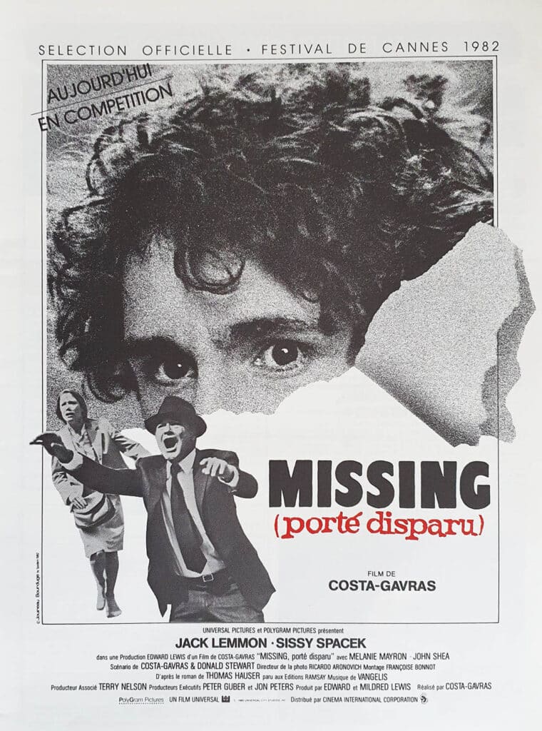 Jack Lemmon personifica a Ed Harmon, un empresario norteamericano que decide viajar a Sudamérica para encontrar a Charlie, su hijo, que desapareció pocos días después del alzamiento militar. Su búsqueda es junto a Beth (Sissy Spacek), su nuera que reside en Chile, desesperada por saber el destino de su esposo. El viaje de Ed no es solo un vuelo de dieciséis horas: es también el descubrimiento de un hijo al que creía frágil y holgazán y al que puede conocer, en realidad, a través del testimonio de la esposa y amigos. Y ese viaje resulta, además, una odisea que devela los siniestros mecanismos de la diplomacia norteamericana, sobre todo interesada en sostener el nuevo gobierno autoritario y en asegurar sus intereses propios, incluso a costa de la vida y la libertad de sus ciudadanos.